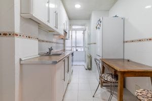 Muy buena distribución: hall, tres dormitorios (antes 4) a patio rehabilitado muy tranquilo, cocina independiente con terraza tendedero a patio interior luminoso y soleado, un salón amplio orientado a C/ María de Guzmán a la altura del colegio Divina Pastora, dos cuartos de baño.