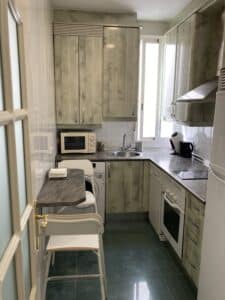 Soleado y tranquilo, cuenta con ventanas en todas las estancias: salón, cocina independiente completamente equipada (vitrocerámica, horno, lavavajillas, nevera, lavadora, microondas y menaje necesario para su uso) cuarto de baño y dormitorio con amplio armario empotrado de diseño.